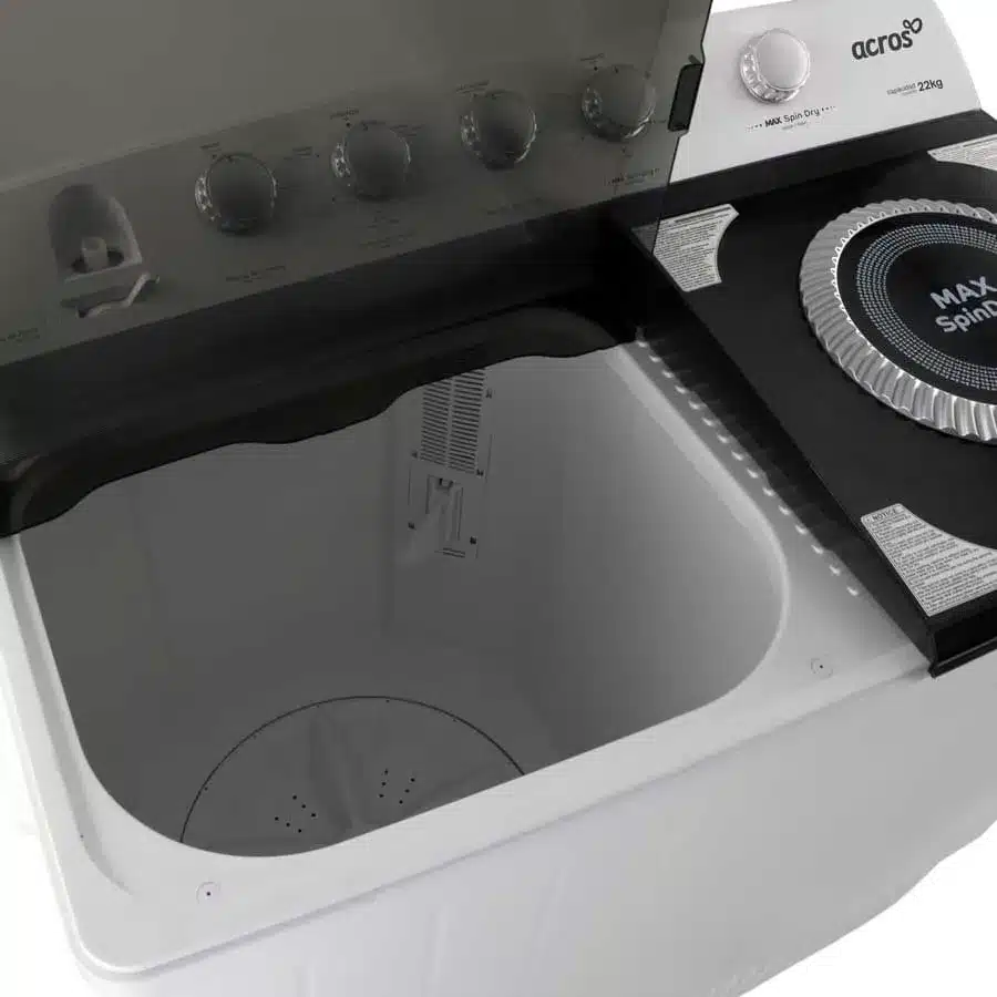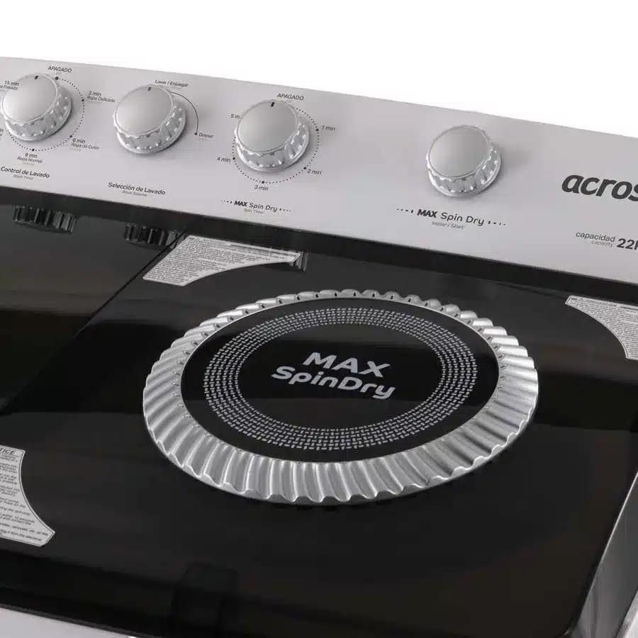 Simplifica la tarea de lavar con la Lavadora Acros de dos tinas, diseñada para brindarte máxima capacidad y eficiencia. Con su gran tamaño, podrás lavar más ropa en menos tiempo, dándote más horas libres para lo que más disfrutas.