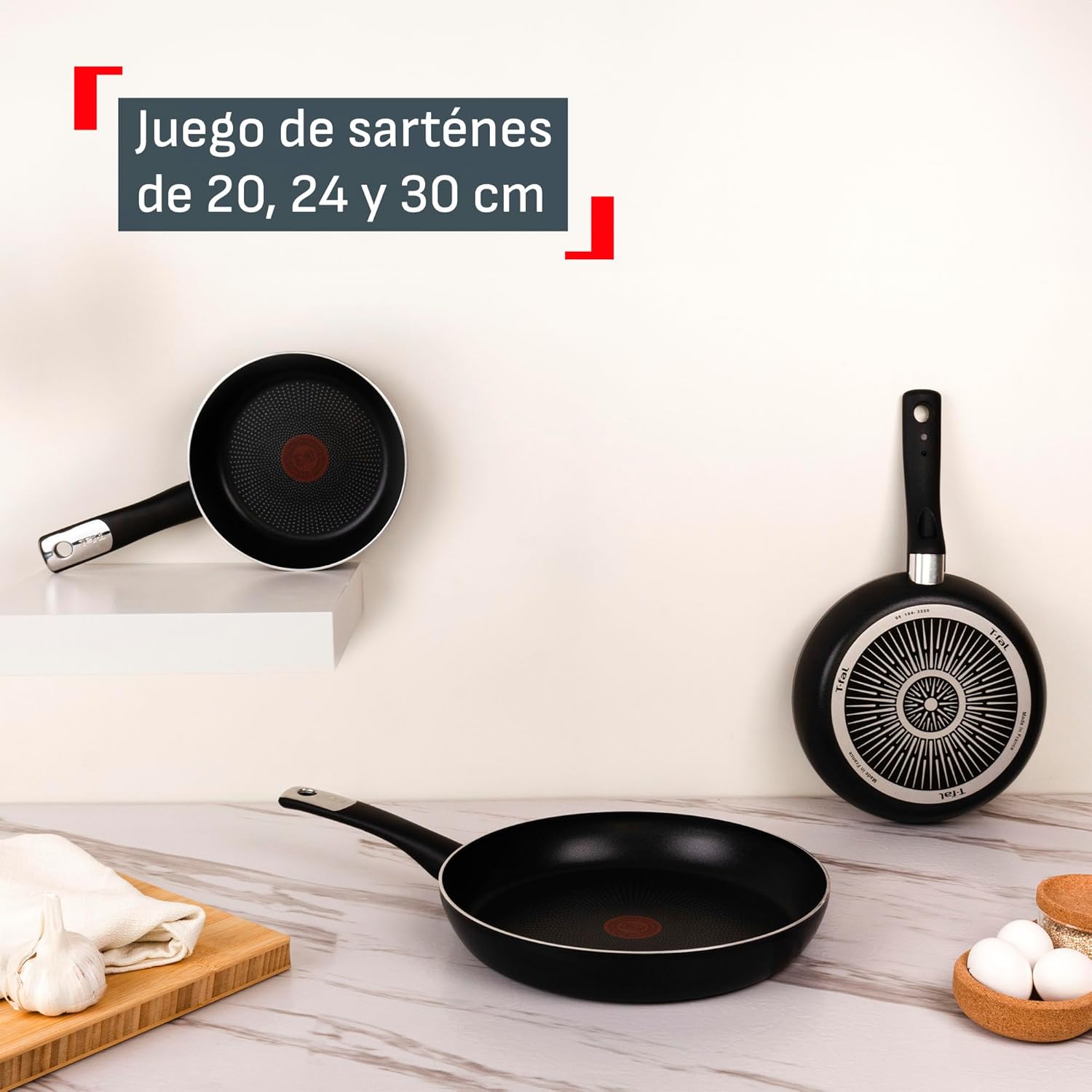 T-fal Juego de 3 Sartenes de 20, 24 y 30 cm Hard Titanium Plus con antiadherente titanium